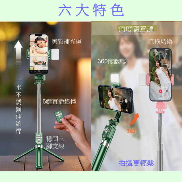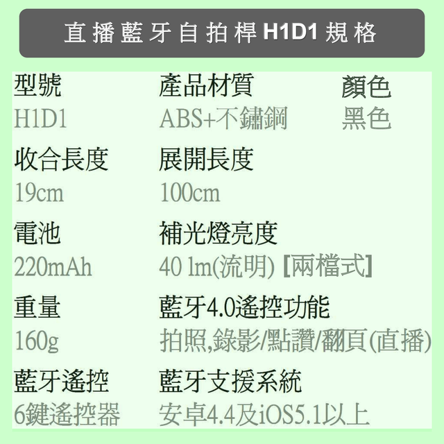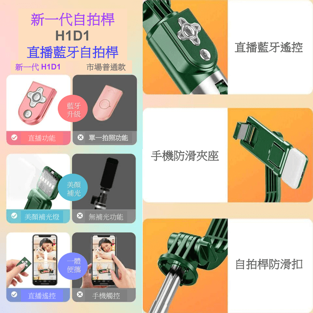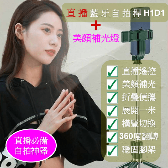 直播藍牙自拍桿H1D1 + 美顏補光燈